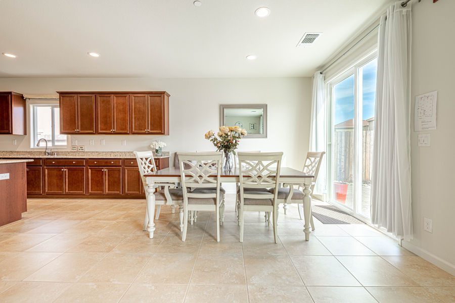 The homes exterior features beautiful landscaping, from arrival to the front door to the breathtaking backyard. Our backyard offers Jasmine lined walkway, shade/privacy trees, climate friendly foliage, fruit trees, and various flowering plants.